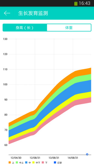 记录与评估>:身长(身高)、体重、体温、排便等,身体指标记录时即时按医学标准评估生长发育情况。