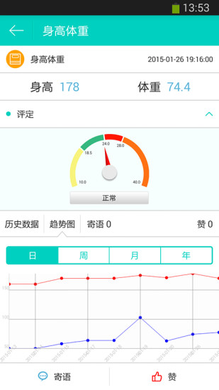 5、记录与评估:月经、运动、膳食、身高体重、腰臀围、血糖、血压、心率、排便、胎动、体温、基础体温、心情等,身体指标记录时软件即时按医学标准进行评估。