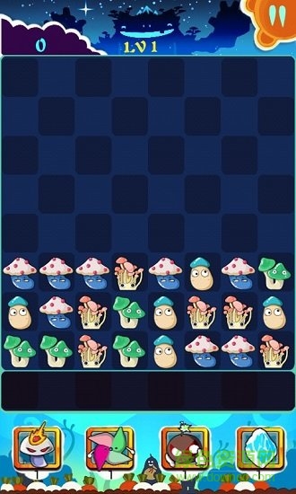 森林中的蘑菇聚集起来开会啦,可爱的Q版蘑菇看上去就有想捏一把的冲动。过关的规则很简单,点击相同的蘑菇三个以上(含三个)的即可消除掉,但同样还会有新蘑菇驾到~开会的时间是有限制的,你能不能在有限的时间内消除更多的蘑菇得更多的分数呢?