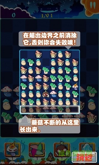 1、通过进行同样的蘑菇消除实现关卡攻克