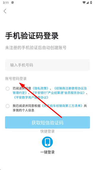 4、在密码登录页面,填写手机号与密码,勾选相关协议后,点击登录,即可完成密码登录操作。