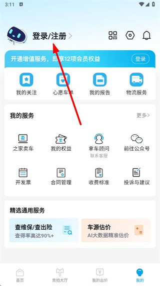 2、在我的个人页面中,点击登录注册选项,进入账号登录的操作界面。