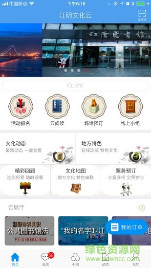 江阴公共文化云是一款服务于江阴本地的城市文化app,文化知识宣传交流演出订票等多种功能,有效开展发展文化活动。快来绿色资源网下载体验吧!