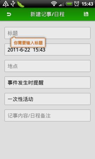 可以将工作事务和生活事项记录在记事本中,贴心的记事提醒功能可以选择不同的提醒方式,如一次、每天、每周、每月、每年、间隔。