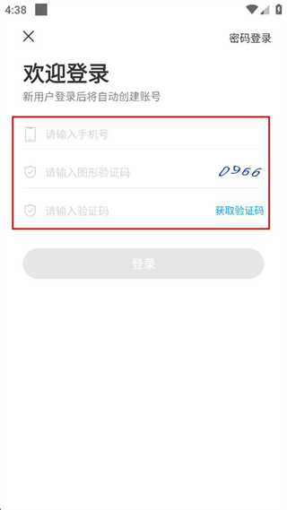 3、在登录界面依次输入手机号、图形验证码、获取并输入验证码。
