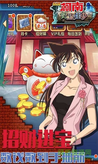 1、首充超值送:工藤新一(橙色)、高中生小兰(橙色)、紫色装备礼包(获得一套四件装备)、金币888888