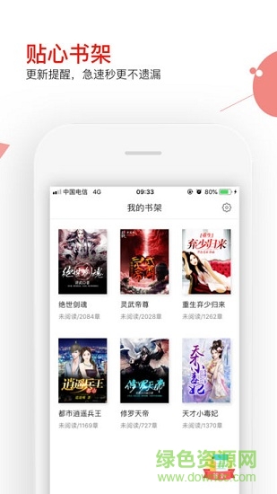 超大容量书架,阅读记录云同步,章节更新实时提醒,一章一节不遗漏