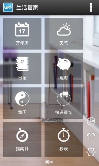 生活管家是一款贴心的生活管家,会满足你生活的许多烦恼,应用于日常生活的方方面面,整合多种生活常用功能,以及多种风格的时钟天气桌面部件。 特点: 一款应用满足多种日常需要,免去安装多款应用的烦恼;稳定实用,严格的资源控制,更省电,占内存更少。 整合: 时钟天气部件、万年历、天气、黄历、日记、记账、指南针、秒表、手电筒、快递查询、农历转换等。