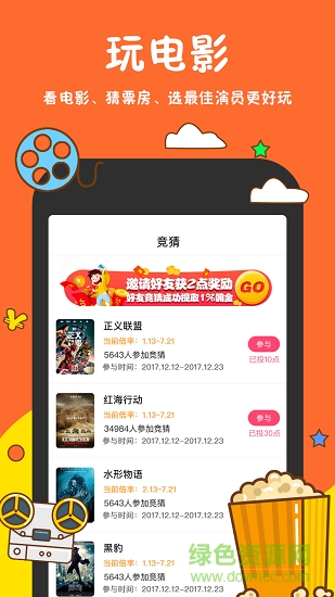 选用每天最受关注影片资源,猜当前热播电影的每天票房的末尾一位(万位)的奇偶数,例如:红海行动-2018年2月26日-最后票房数是15.56亿,那么万位为6(偶数),您选择偶数就赢啦,赢的鱼丸干嘛用?当然是换电影代金券~~然后约上小伙伴一起去看你喜欢的电影吧~~