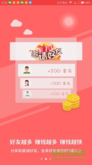 1.每阅读一篇文章或看一个视频,即可得到10金币的奖励;