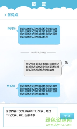3.信息:家长通过信息功能,可以查看孩子的家庭作业、通知、留言、考勤,可以发送留言给老师;