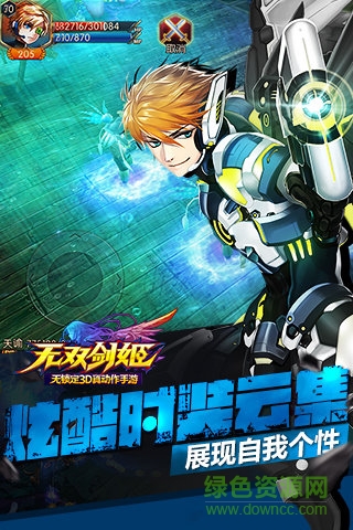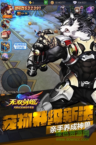 1.3DArpg手游突破之作《无双剑姬》,首次实现真实物理碰撞,无锁定自由连击,20V20公会战,实时跨服PK等创新玩法,