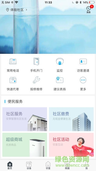 小区的各种通知,诸如社区消息,设备消息等,都可以通过点击消息方便地接收和查看。