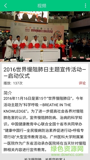视频:各种慢阻肺相关学习、教育、指导视频,让用户足不出户随时随地学习慢阻肺康复运动。