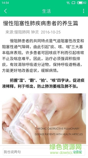 资讯:提供各种慢阻肺相关的资讯信息,让用户时刻了解各种慢阻肺资讯