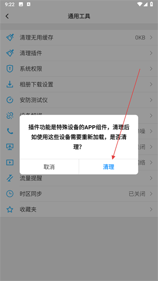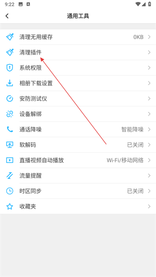 3、在通用工具页面,点击清理插件的选项。