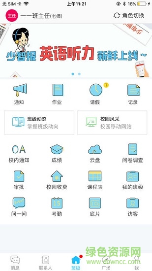 3、通知、留作业、课程表、请假功能集于一体,让老师的班务工作更简单。