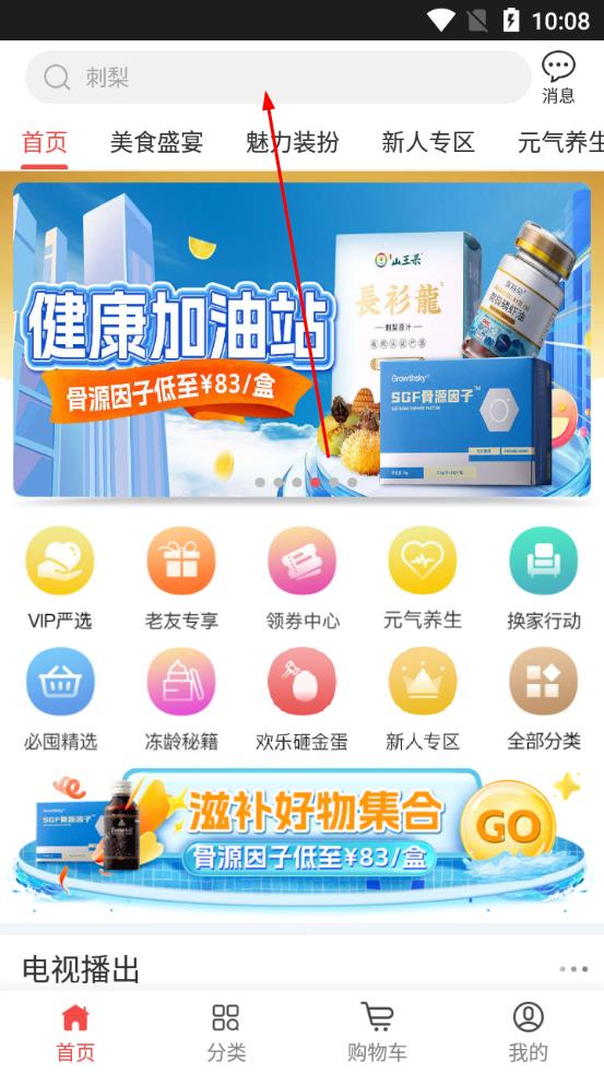 1、打开央广购物App,在首页上方搜索栏中输入想要购买的商品名称。