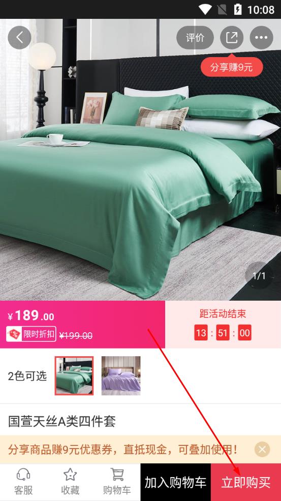 3、在商品详情页,确认商品信息无误后,点击立即购买按钮。