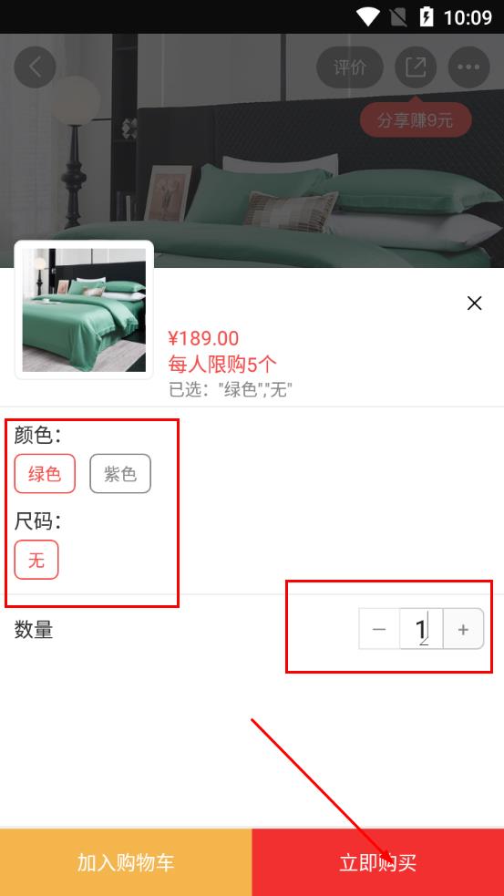 4、点击立即购买后,选择商品的规格,确定购买数量,再次点击立即购买。