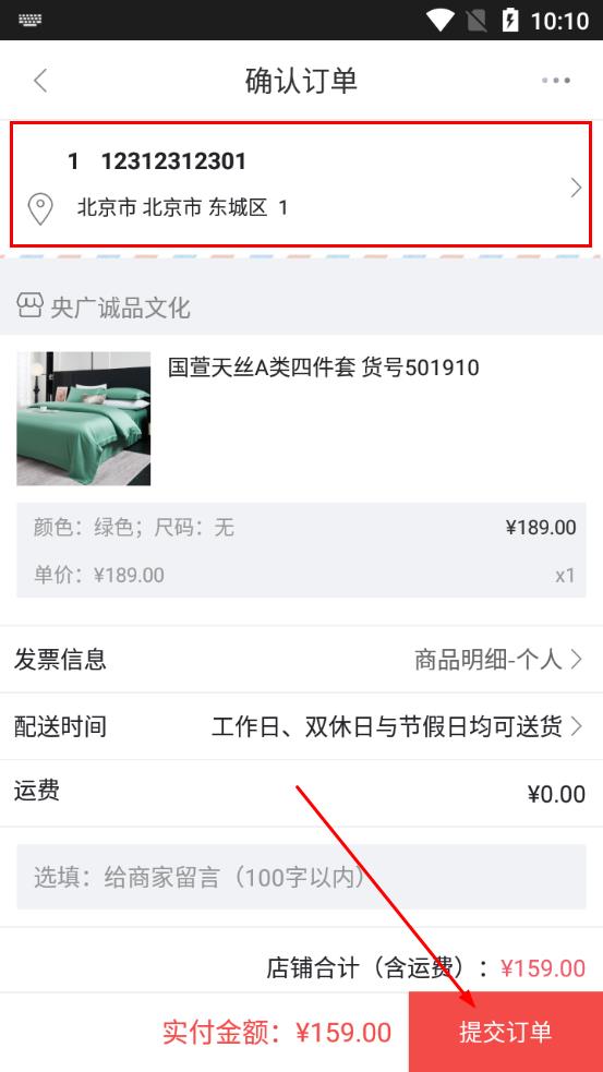 5、进入确认订单页面,核实收货地址、商品信息等内容,点击提交订单,完成支付,即可完成购买。