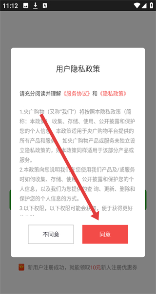 1、在打开App后,可以通过点击弹窗中的同意按钮,进入登录使用。