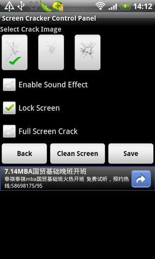 破碎屏幕是一款可以让你自己去操作,制作出破碎手机屏幕的软件,让你的屏幕一碰就碎,当然不是真的碎了,只是模拟出屏幕破碎的情形。这款软件与同类型的软件最大的区别在于,可以自己把握破碎的伤口。Screen Cracker可以使屏幕看起来破碎,适合娱乐。还在害怕没有娱乐气氛么?快来下载吧,破碎屏幕帮你解决尴尬气氛。