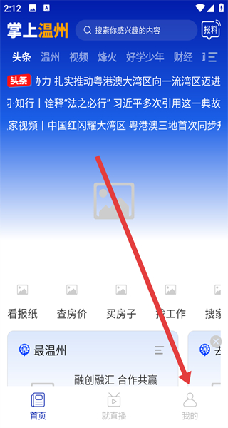 1、在进入到掌上温州首页中时,可以点击下方我的按钮,进入我的主页查看。