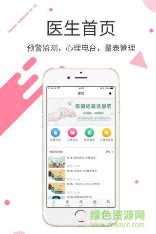 心理云平台APP集患者端、医生端于一体。患者端将心理自测、专家咨询、心理电台、课程学习、社区问答、疾病百科、用药提醒等功能集合,让患者享受更全面、更优质、更高效的医疗服务;医生端将患者管理、预警监测、问卷随访、心理电台、社区问答、医生圈、课程学习、文章发表等功能集合,实现高效的院内沟通和便捷的医患交流,拉近与患者的距离,是医护人员的好帮手。