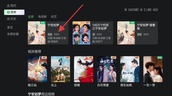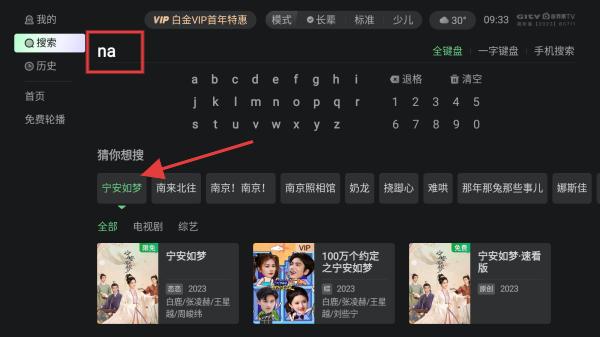 2、逐键点击字母/数字,输入完整剧名,输入几个英文字母也会跳出热门相关的剧集。