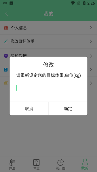 3、能够记录下用户每天的温度以及体重,大家可以更加清楚的了解自己身体的变化,对于正在减肥或是健身的用户来说,实用性非常强;