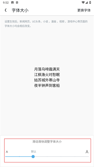 4、在字体大小设置,滑动底部的滑块调整字体大小,调整至合适尺寸。