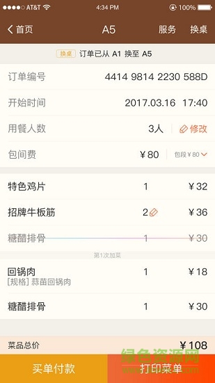2、接收食客用餐过程中的的呼叫
