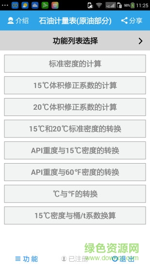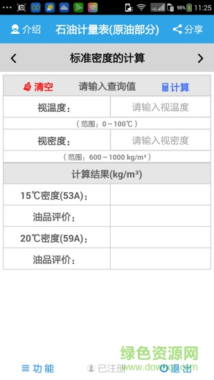 石油计量表软件是一款石油计算参考手机app,用户可以直接在手机上查看详细的温度、密度、体积等计算标准和进行换算转换,欢迎喜爱的朋友到绿色资源网下载体验!