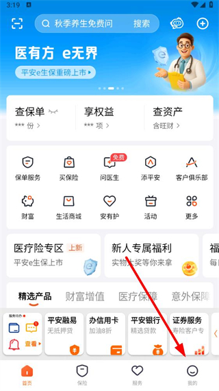 1、打开平安金管家app,点击底部导航栏中我的选项。