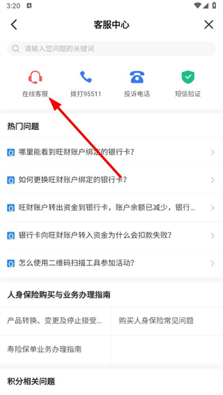 4、在客服中心页面,点击在线客服选项,即可联系在线客服。