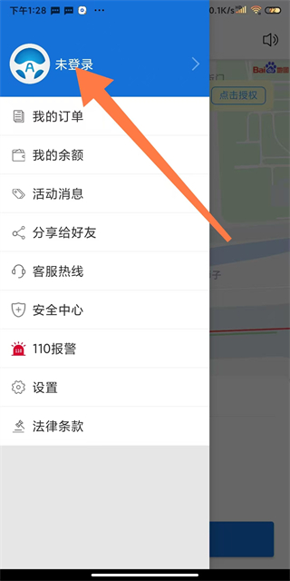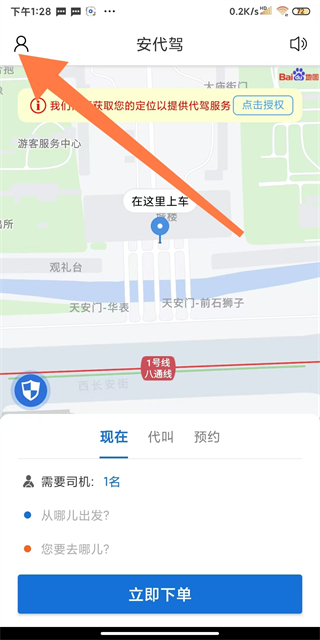 1、在安代驾app首页,点击左上角头像图标,进入个人功能页面。