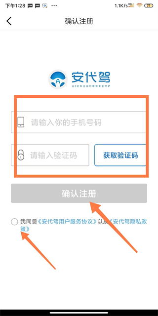 4、输入手机号码验证码,勾选同意,点击确认注册按钮,即可完成账号注册。
