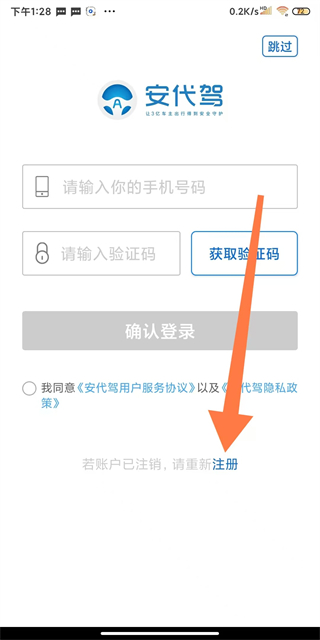 3、在登录注册页面,点击注册选项,进入确认注册页面。