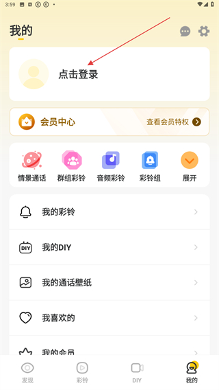 1、打开联通视频彩铃APP,进入到主页内,点击导航栏中彩铃的图标。