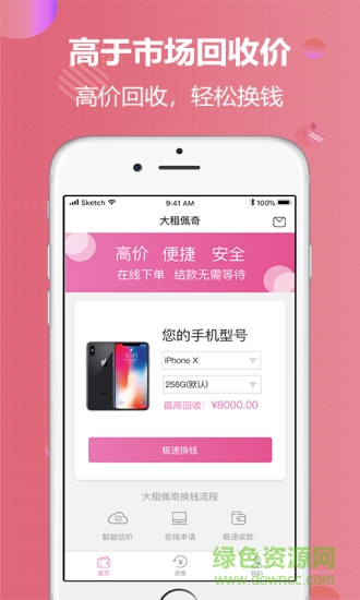 大租佩奇手机版是一款靠谱的手机回收平台,智能估价在线回收上门取货,用户信用达标可以先下款,审核通过速度快,旧手机轻松变现,还可以通过邀请好友直接获取现金红包,欢迎来绿色资源网下载!