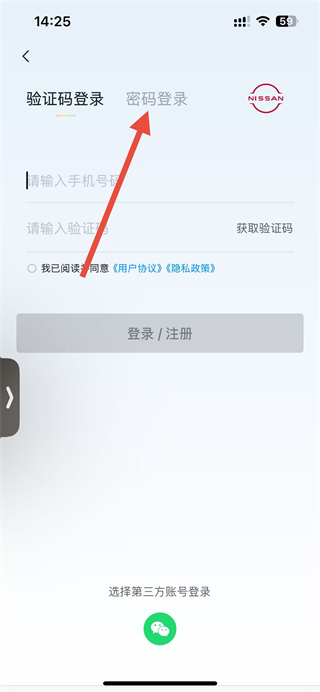 3、在登录界面中,找到密码登录选项并点击,切换至账密登录模式。