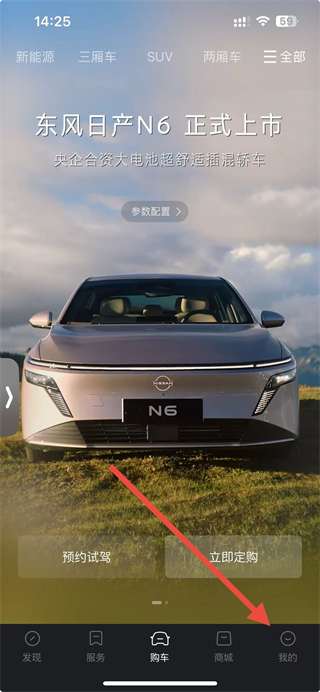 1、打开日产智联app,在首页下方点击我的进入个人页面。