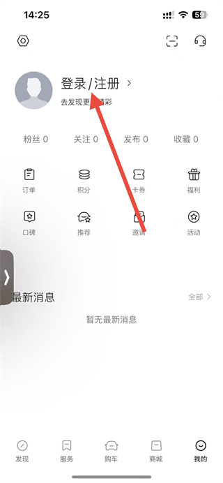 2、在我的页面中,找到登录注册区域并点击,触发登录流程。