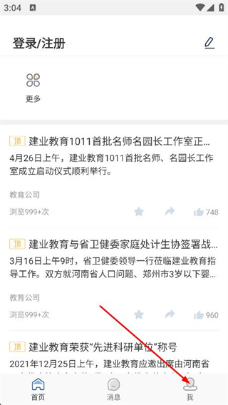 1、打开青蓝家园家长端,点击导航栏的我。