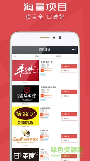商机速递是一款集线上线下热门餐饮美食连锁品牌发布、展示、投资、加盟为一体的资源整合软件。