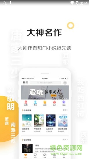 悠悠追书app软件是一款能够向用户推荐海量小说阅读的软件,用户可以通过软件随意观看超多小说,热门精选每天更新,为你推荐最适合你的,同类分享,找寻你最喜爱的,喜欢的用户快来绿色资源网下载吧!