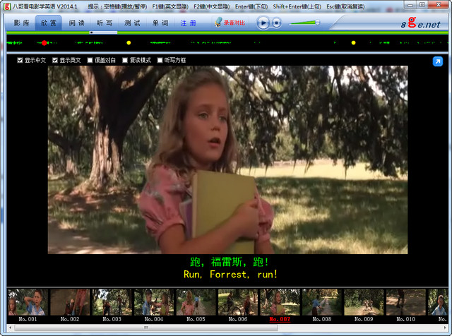 四、独立字幕:F1快捷键显示或隐藏英文字幕,F2快捷键显示或隐藏中文字幕。
