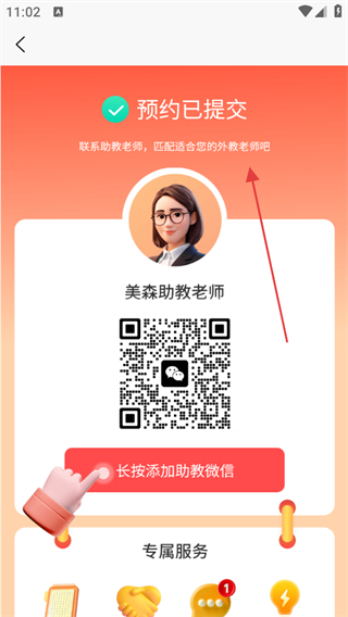 3、进入该外教的教师档案页面后,再次点击底部的免费预约按钮。