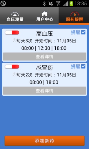 3、服药提醒功能,用户可以设定药物的时间,服药次数,并提醒用户服药。